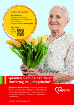 Mit Ihrer Spende möchten wir unseren Bewohnerinnen einen würdigen, fröhlichen und liebevollen Muttertag ermöglichen: mit Blumen, kleinen Geschenken, Musik, Kaffee und Kuchen sowie gemeinsamen Aktivitäten, die ein Lächeln schenken und zeigen:Ihr seid nicht vergessen!“